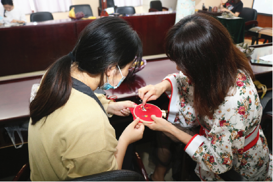 到場的職工歡聚一堂、穿針引線,大家一邊認真縫制香包,一邊聽著美妙的古箏樂曲,有的還相互幫助切磋繡法,場景很是熱鬧。一個個精美的香囊不僅為端午佳節增添了一份濃濃的喜氣,同時也增進了同事之間的深厚感情,更傳承了端午民俗的文化內涵,營造了濃濃的節日氛圍。