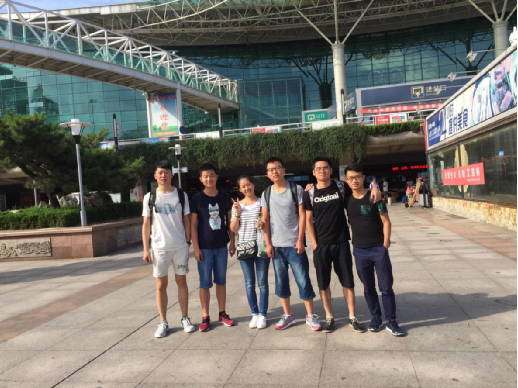 從西安到達山東省濰坊火車站時與同去的新同事合影(左一為耿濤濤)