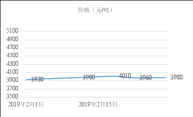 2019年2月份國內鋼價先揚后抑,總體處于震蕩盤整態勢。節后庫存壓力較大,持續陰雨天氣,下游需求遲遲未見啟動,現貨上行乏力。元宵過后,終端工地陸續復蘇,期螺走勢也止跌企穩,加上鋼廠挺價以及成本高企等因素,現貨價格逐步走穩。下圖為西安地區螺紋鋼HRB400Ф20mm價格走勢。