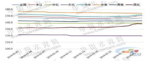 全國(guó)水泥價(jià)格自1月開啟季節(jié)性調(diào)整,2、3月價(jià)格跌幅逐漸縮窄,目前已基本走出一季度淡季??傮w來看3月份南方需求恢復(fù)快于北方,東北市場(chǎng)啟動(dòng)緩慢,華北仍有環(huán)保壓力,行情均穩(wěn)定,西北相對(duì)略快,當(dāng)月價(jià)格大幅回漲。隨著天氣晴好,長(zhǎng)三角、西南地區(qū)需求恢復(fù)良好,下旬價(jià)格止跌回漲,中南局部地區(qū)仍有陰雨天氣,行情尚未止跌。