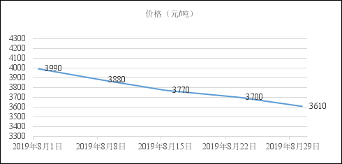 2019年8月份國內鋼價大幅下行,全月累計跌幅380元/噸。下圖為西安地區螺紋鋼HRB400EФ20mm價格走勢。